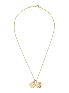 Elevate your style with these stunning metallic earrings featuring a logo plaque and heart pendant. Crafted from a blend of brass and glass, these earrings are embellished with crystals and showcase a gold-tone metal finish. Perfect for any occasion, these earrings are a must-have accessory. Composition: 80% Brass, 20% Glass.